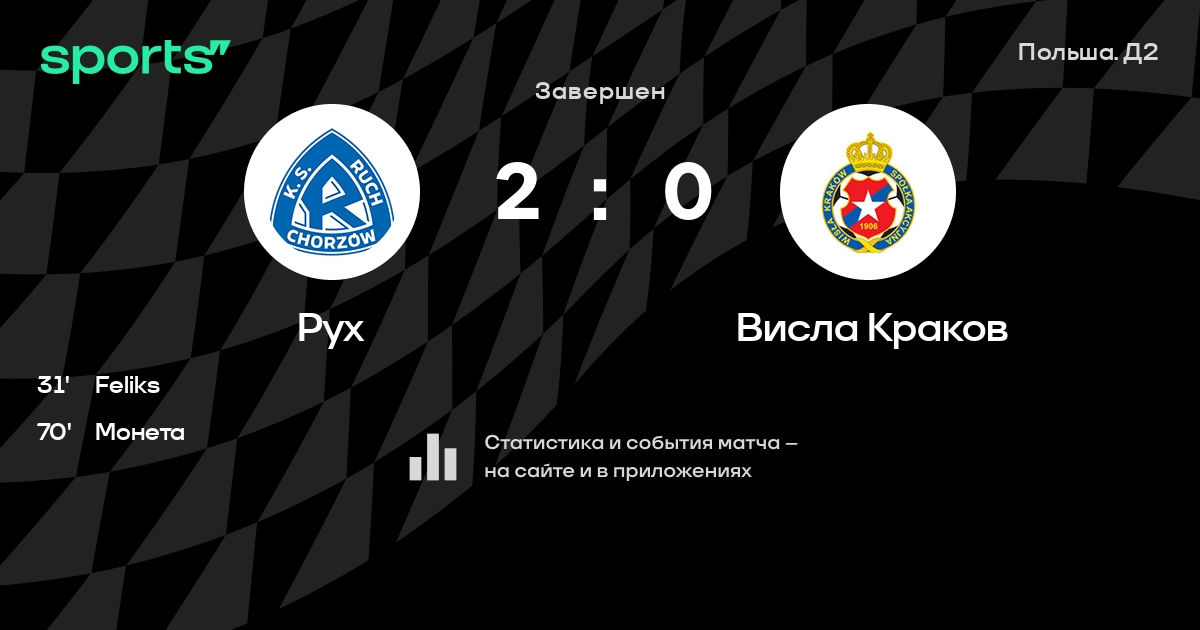 Рух – Висла Краков: Рух не проигрывает в 6 из 8 последних матчей против этого соперника