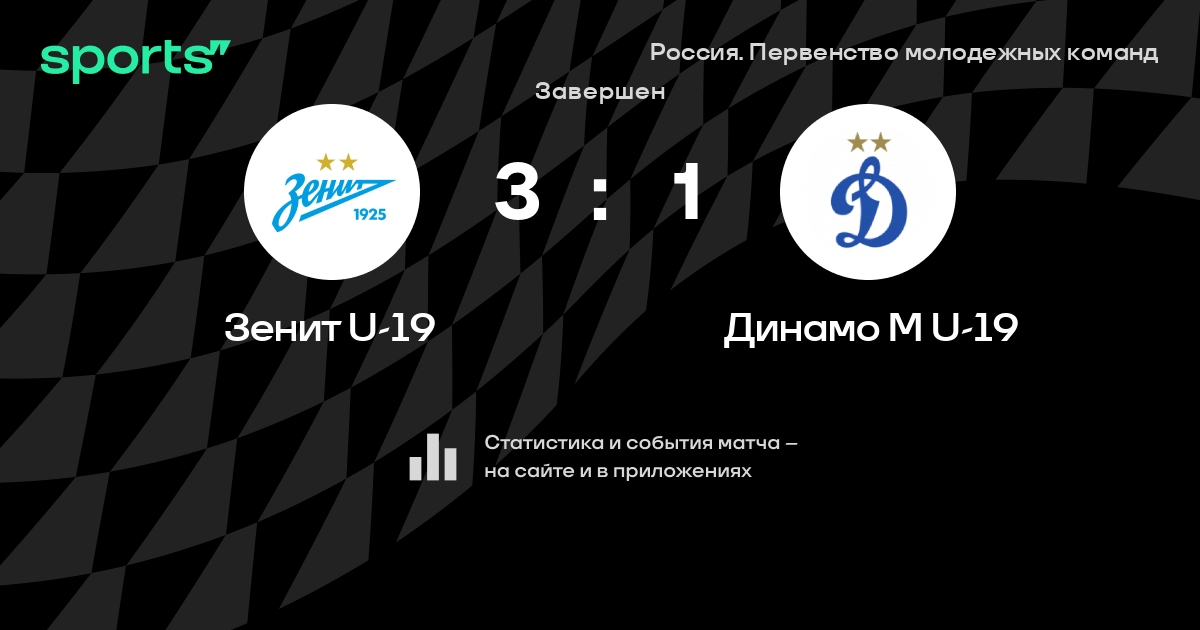 Зенит U-19 – Динамо М U-19: Зенит U-19 побеждает в 3 последних очных матчах