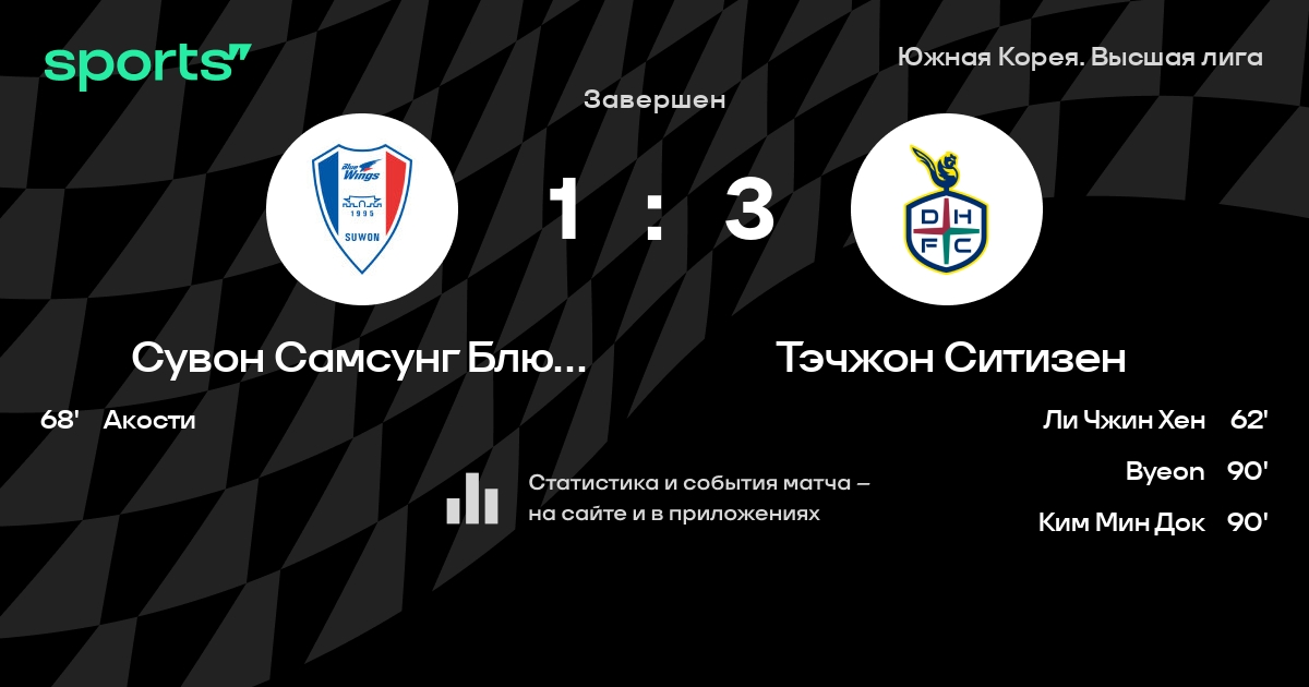 Сувон Самсунг Блювингс – Тэчжон Ситизен: Сувон Самсунг Блювингс побеждает в 3 последних очных матчах