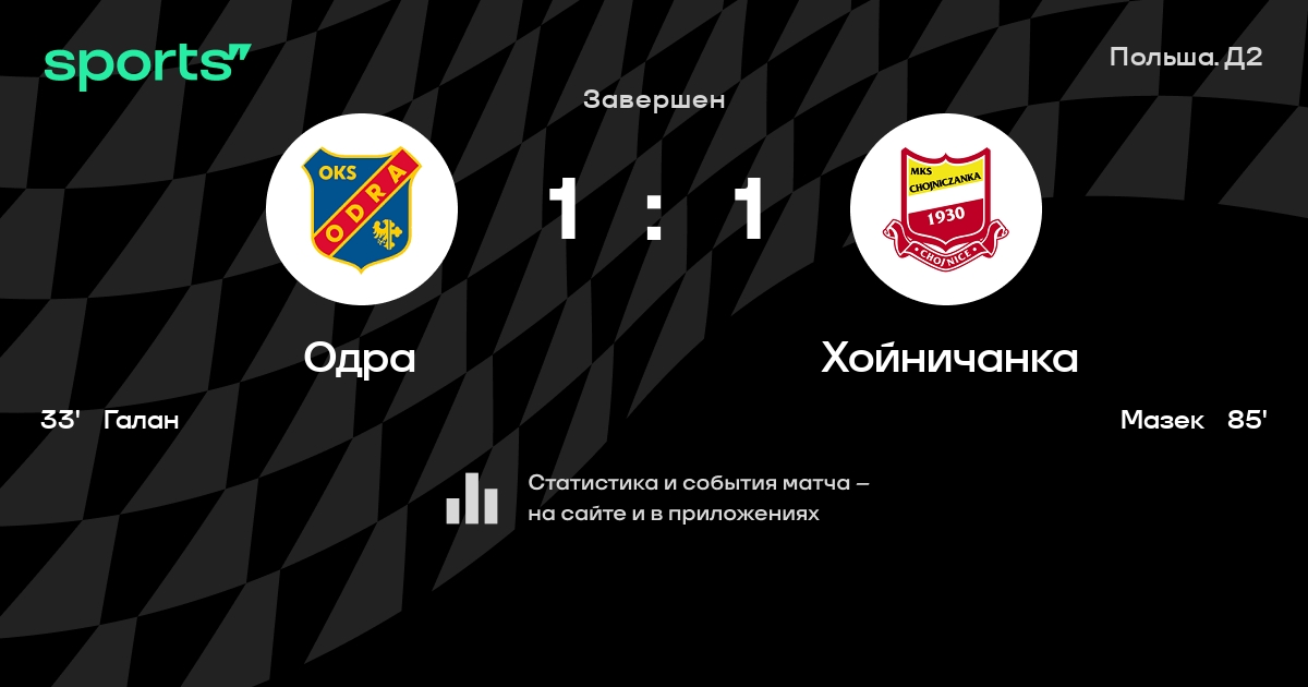 В последних 5 играх Одра пропускает в среднем 1.00 гола за игру