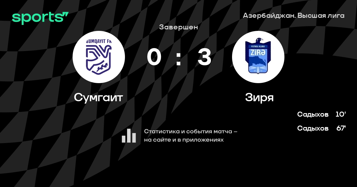 Сумгаит – Зиря: Зиря не пропускает в 0 из 10 последних матчей против этого соперника