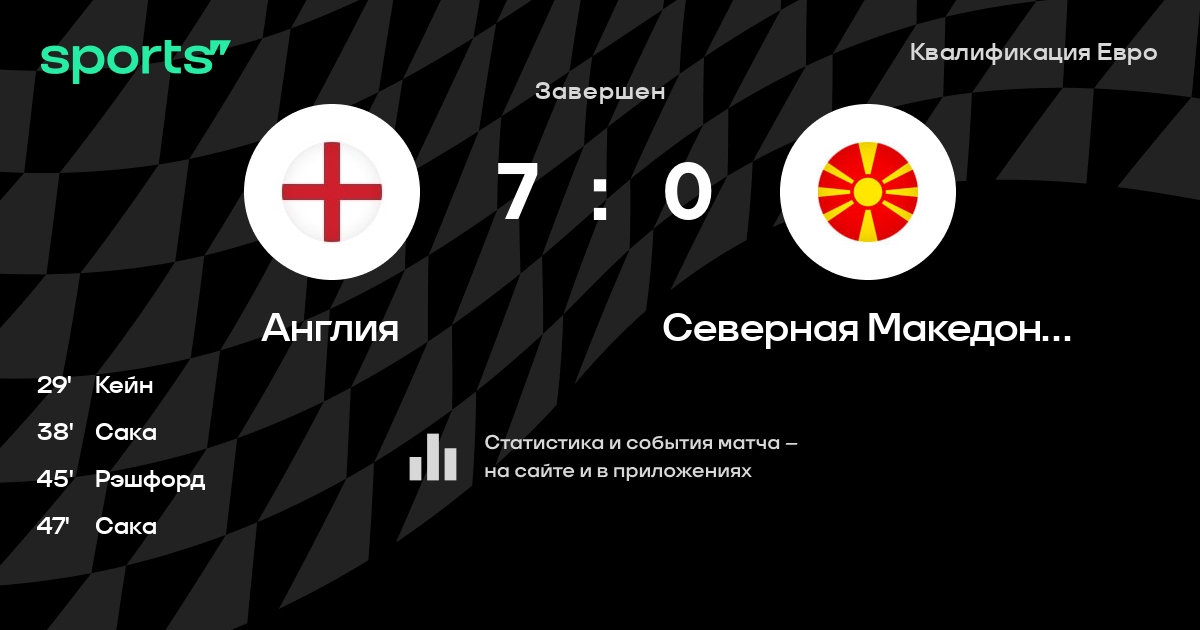 Англия забила 7 голов Северной Македонии. Сака сделал хет-трик, у Кейна дубль