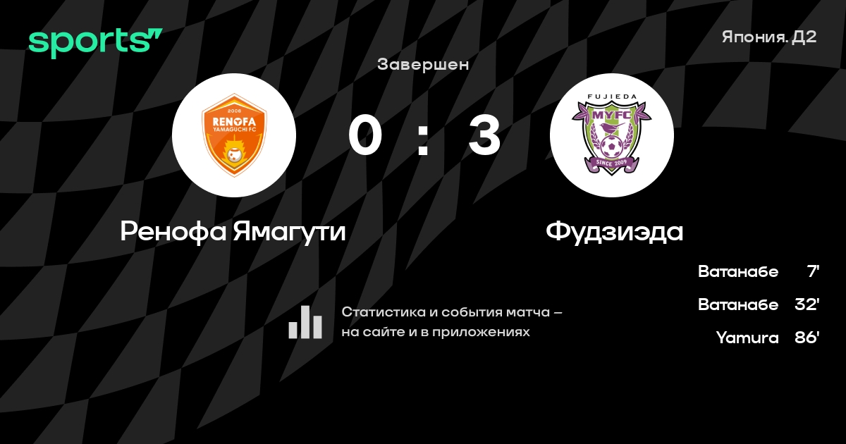В последних 5 играх Ренофа Ямагути пропускает в среднем 1.80 гола за игру