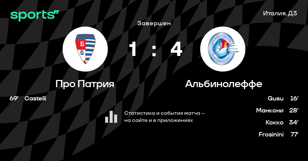 Про Патрия – Альбинолеффе: Альбинолеффе не проигрывает в 9 из 11 последних матчей против этого соперника в турнире «Серия С»