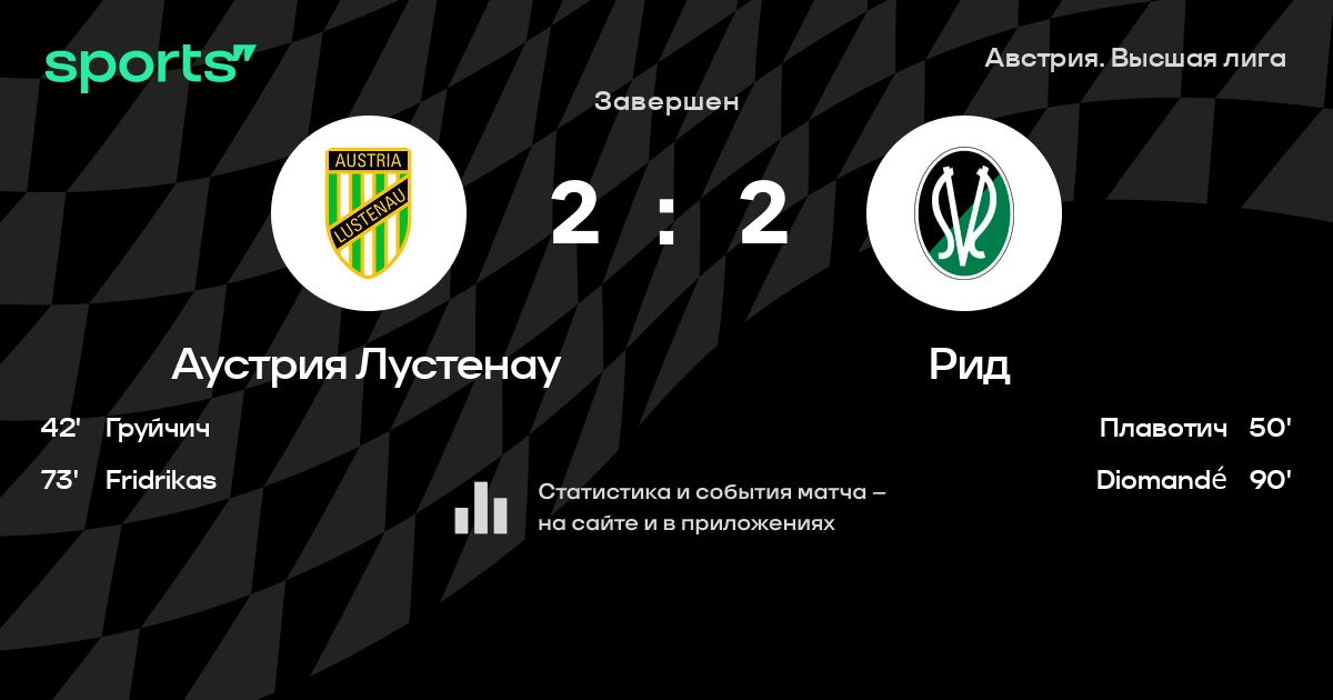 Аустрия Лустенау – Рид: Рид не проигрывает в 15 последних матчах против этого соперника