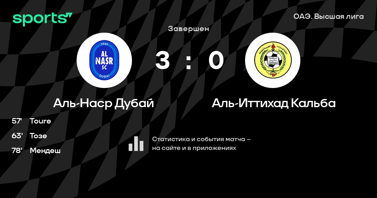 Аль-Наср Дубай – Аль-Иттихад Кальба: Аль-Иттихад Кальба забивает в 8 последних матчах против этого соперника