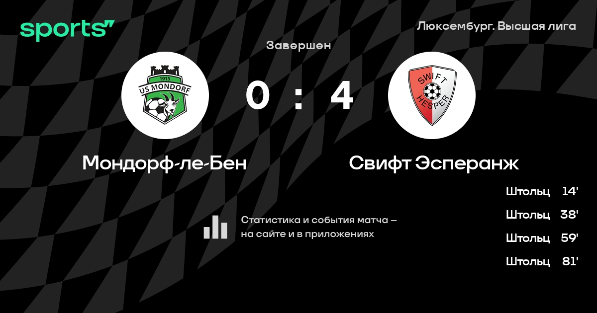 Мондорф-ле-Бен – Свифт Эсперанж: Мондорф-ле-Бен забивает в 8 последних матчах против этого соперника
