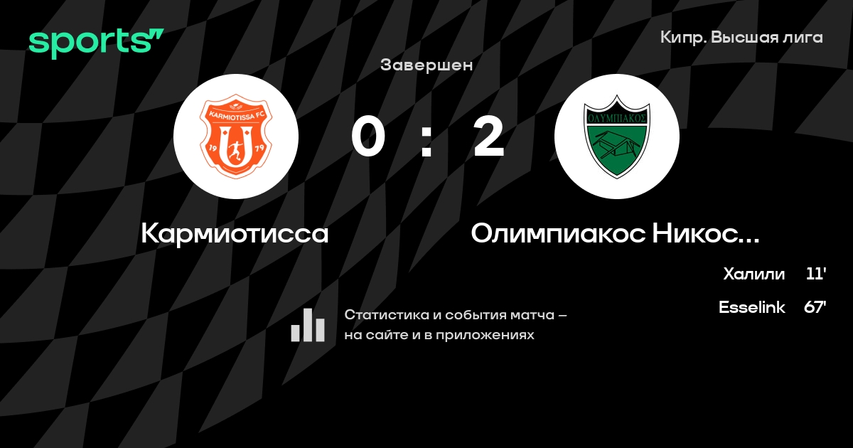 Кармиотисса – Олимпиакос Никосия: Олимпиакос Никосия не проигрывает в 5 из 7 последних матчей против этого соперника