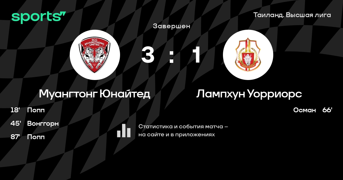 Муангтонг Юнайтед – Лампхун Уорриорс: коэффициенты
