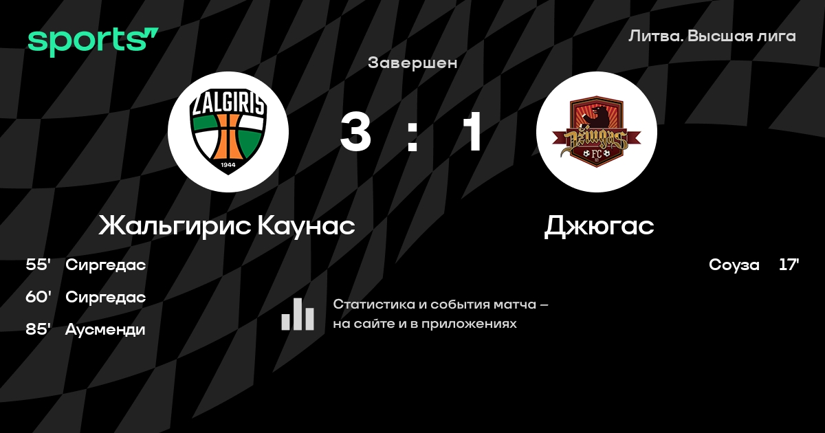 Жальгирис Каунас – Джюгас: Жальгирис Каунас побеждает в 5 последних очных матчах