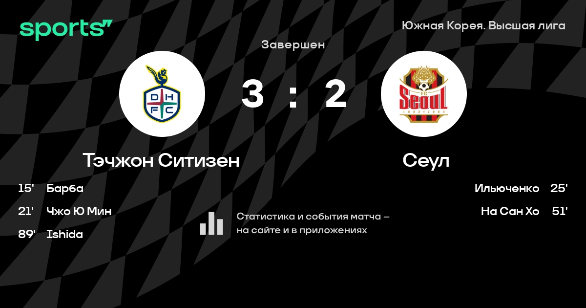 Ли Чхан Гын - Кривоцюк, Чжо Ю Мин, Ким Мин Док, О Чжэ Сок - Со Ен Чжа, Lim, Ли Чжин Хен - Пэ Чжун Хо, Byung-Kwan Jeon, Тиаго ОробоЗапасные: Чжон Сан, Ким Хен У, Ли Хен Сик, Кон Мин Хен, Ishida, Kim, Ю Кан Хен