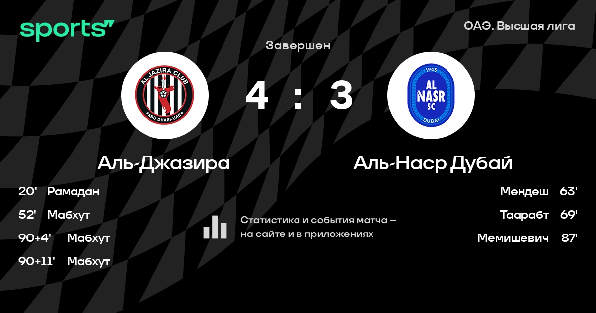 Аль-Джазира – Аль-Наср Дубай: Аль-Джазира забивает в 5 из 7 последних матчей против этого соперника