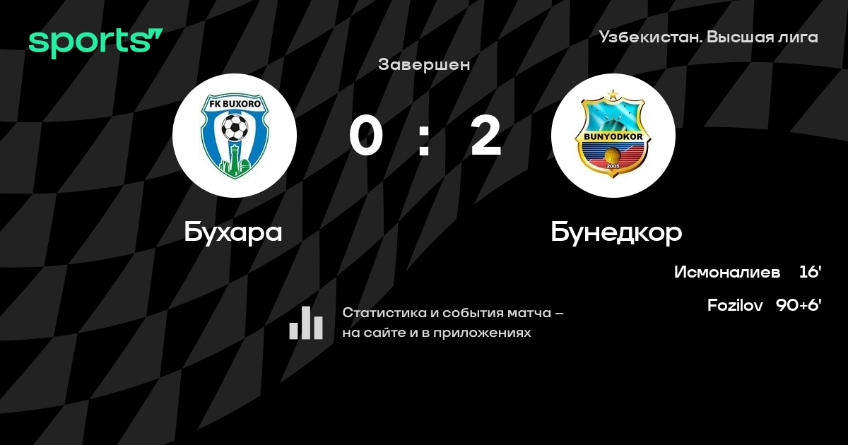 Бухара – Бунедкор: Бухара не проигрывает в 5 из 7 последних матчей против этого соперника дома