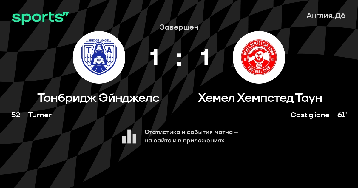 Тонбридж Эйнджелс – Хемел Хемпстед Таун: Хемел Хемпстед Таун не проигрывает в 6 последних матчах против этого соперника
