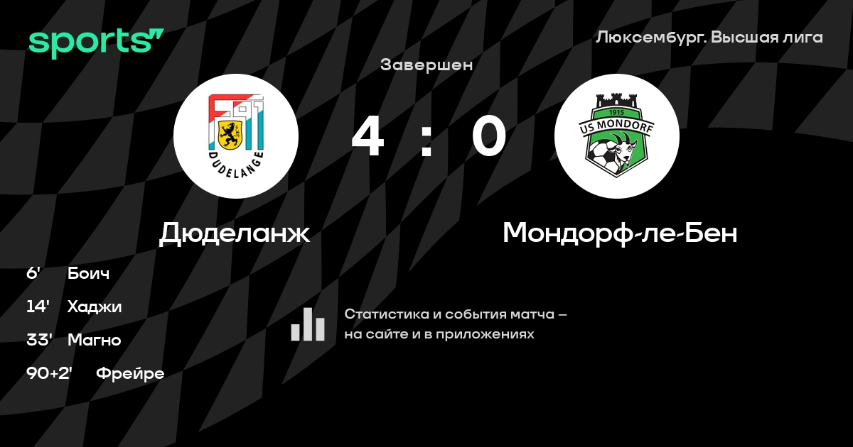Дюделанж – Мондорф-ле-Бен: Дюделанж забивает в 16 последних матчах против этого соперника