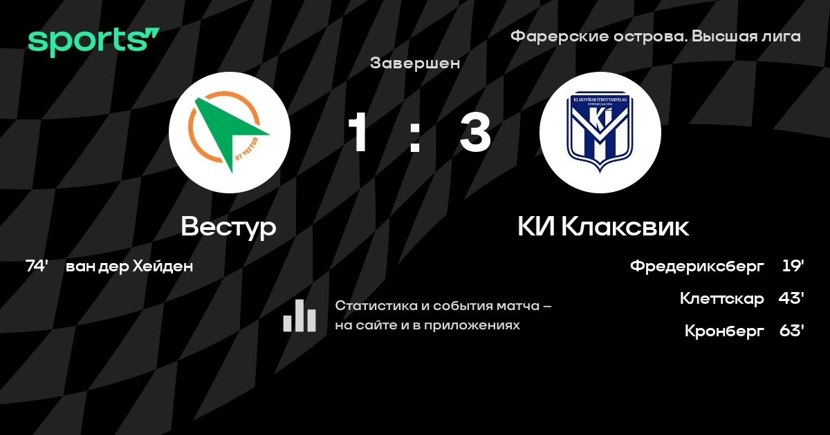 Вестур – КИ Клаксвик: КИ Клаксвик не пропускает в 1 из 9 последних матчей против этого соперника