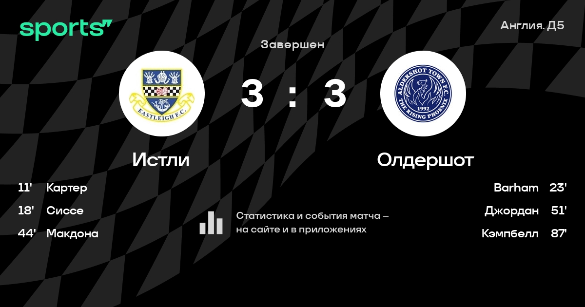 Истли – Олдершот: Истли не проигрывает в 5 из 7 последних матчей против этого соперника