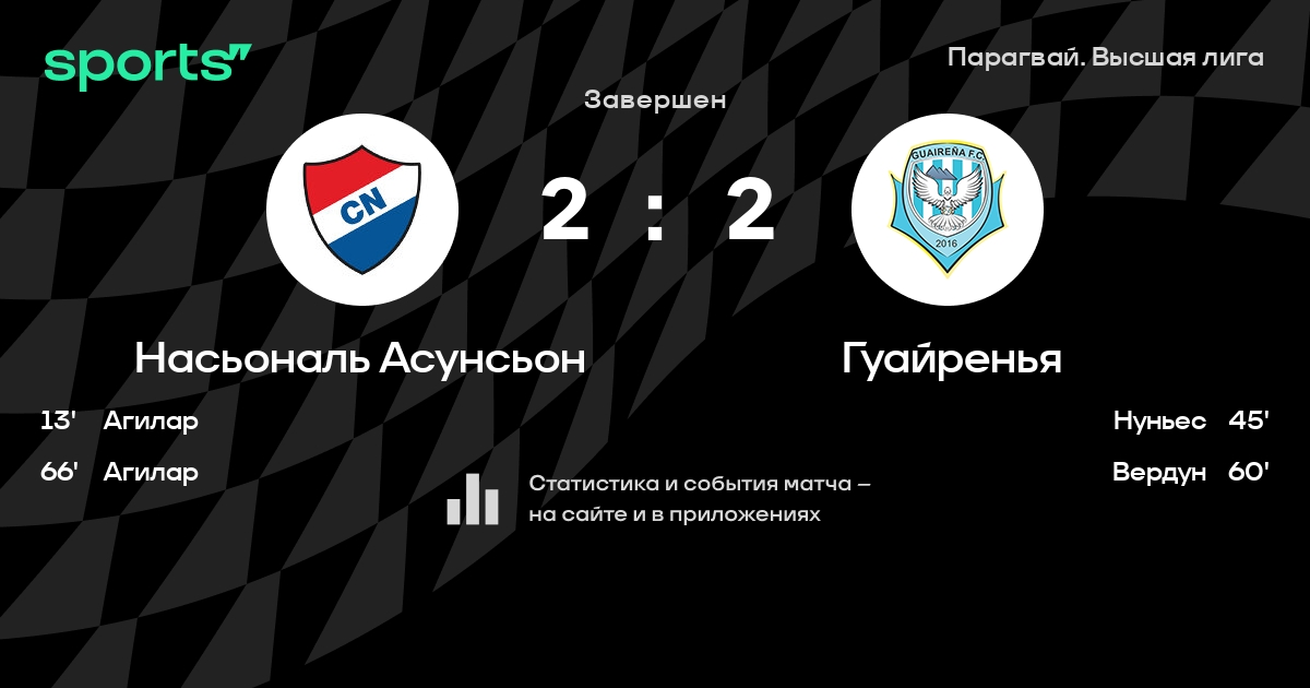 Насьональ Асунсьон – Гуайренья: Насьональ Асунсьон побеждает в 3 последних очных матчах