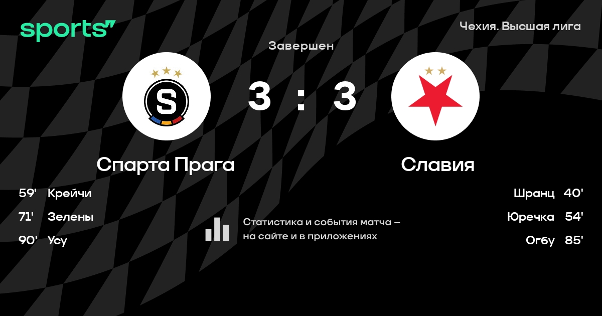 Спарта Прага – Славия: Славия не проигрывает в 6 из 8 последних матчей против этого соперника в гостях