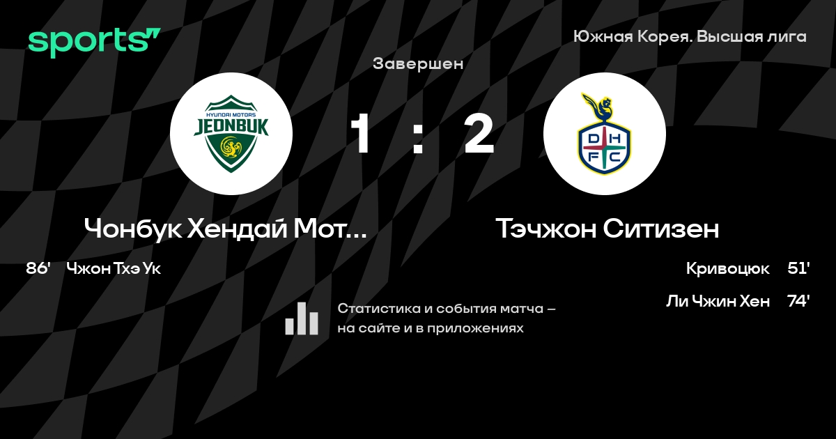 Чонбук Хендай Моторс – Тэчжон Ситизен: Тэчжон Ситизен забивает в 6 последних матчах против этого соперника