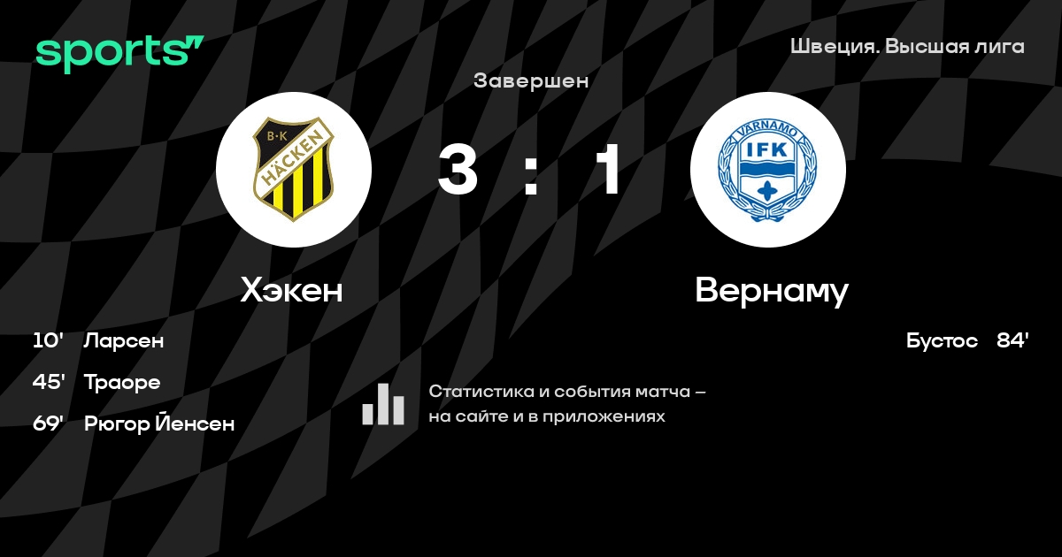 Хэкен – Вернаму: Хэкен побеждает в 4 последних очных матчах