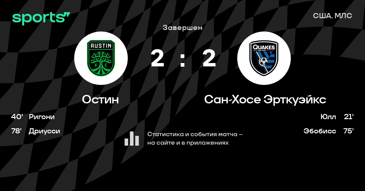 Остин – Сан-Хосе Эрткуэйкс: Сан-Хосе Эрткуэйкс забивает в 4 последних матчах против этого соперника
