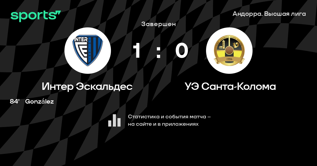 Интер Эскальдес – УЭ Санта-Колома: УЭ Санта-Колома не проигрывает в 7 из 9 последних матчей против этого соперника в гостях