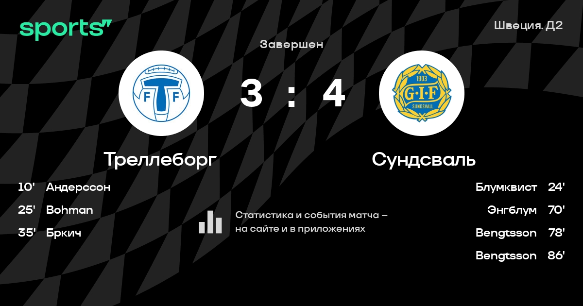 Треллеборг – Сундсваль: Сундсваль забивает в 5 из 7 последних матчей против этого соперника