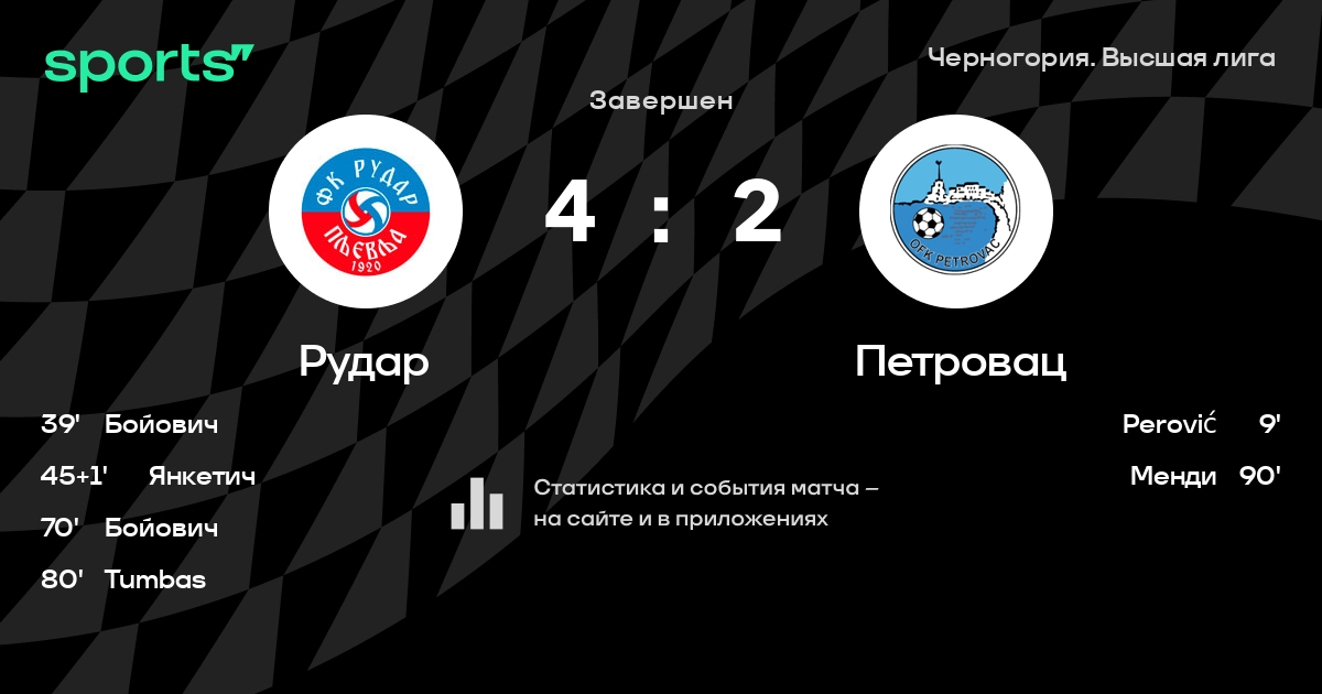 Рудар – Петровац: Рудар не проигрывает в 5 из 7 последних матчей против этого соперника