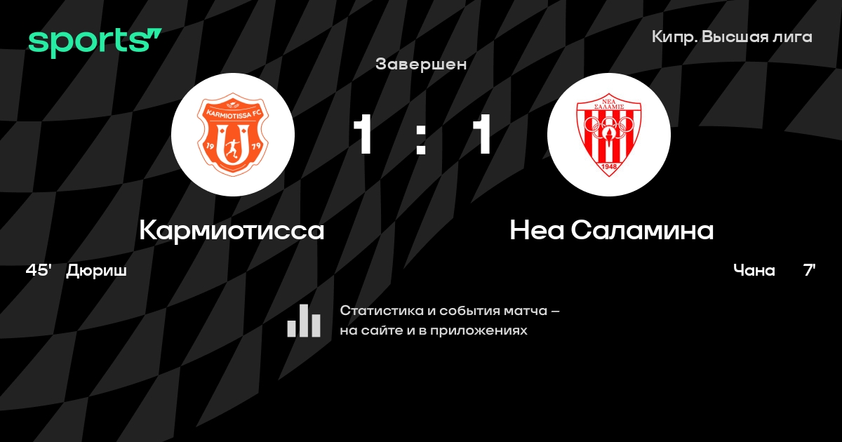 Кармиотисса – Неа Саламина: коэффициенты