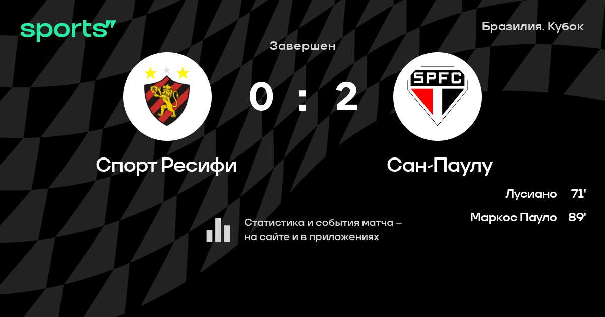 Спорт Ресифи – Сан-Паулу: Сан-Паулу не пропускает в 5 последних матчах против этого соперника