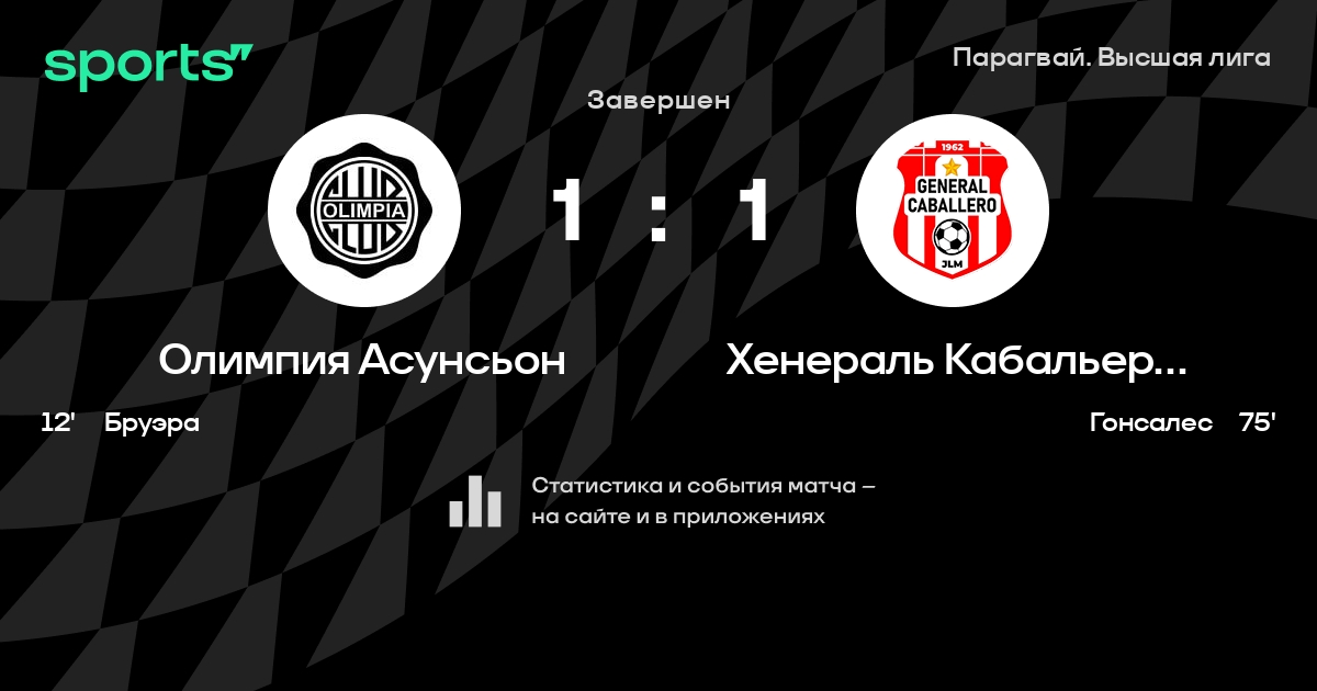 Олимпия Асунсьон – Хенераль Кабальеро ХЛМ: Олимпия Асунсьон побеждает в 4 последних очных матчах