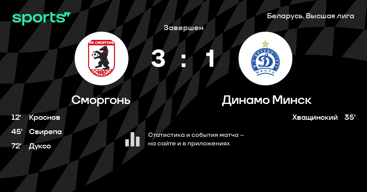 Сморгонь – Динамо Минск: Динамо Минск побеждает в 3 последних очных матчах