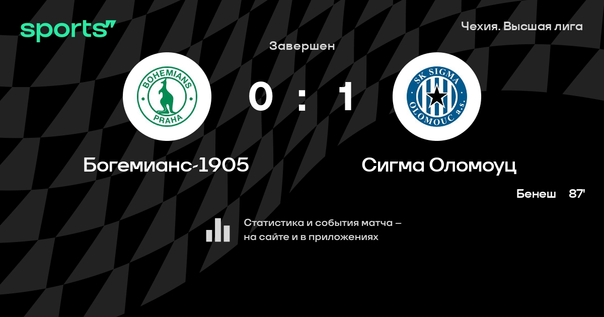 Богемианс-1905 – Сигма Оломоуц: Сигма Оломоуц не проигрывает в 7 из 9 последних матчей против этого соперника