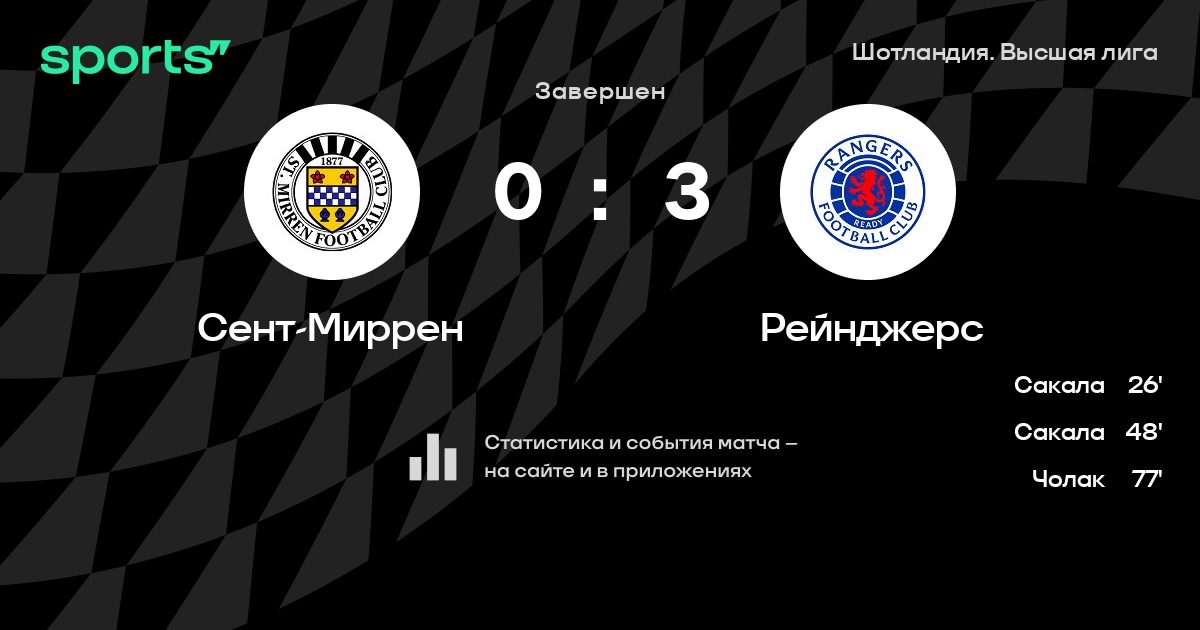 Сент-Миррен – Рейнджерс: Рейнджерс не проигрывает в 8 последних матчах против этого соперника