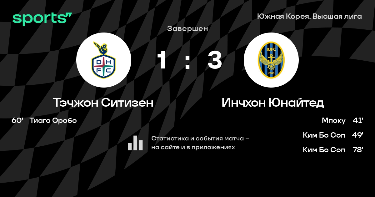 Тэчжон Ситизен – Инчхон Юнайтед: Инчхон Юнайтед забивает в 22 последних матчах против этого соперника