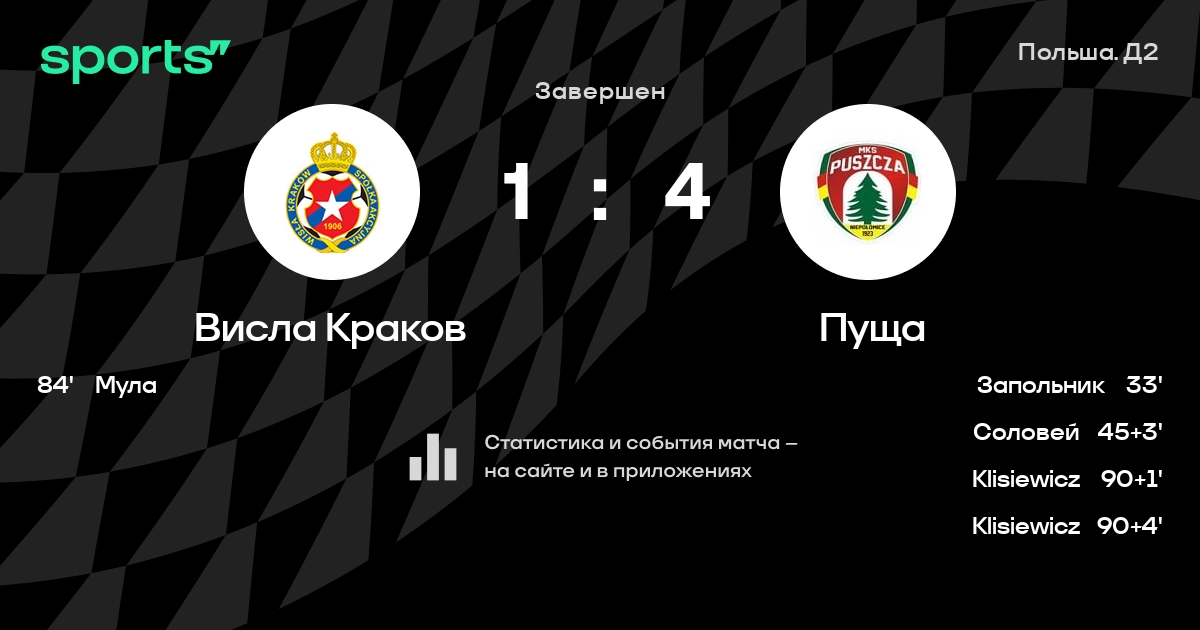 Висла Краков – Пуща: Пуща забивает в 7 последних матчах против этого соперника