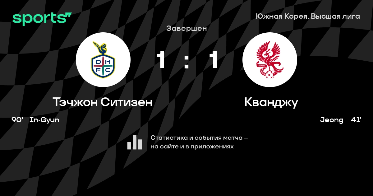 Тэчжон Ситизен – Кванчжу: Тэчжон Ситизен не проигрывает в 6 из 8 последних матчей против этого соперника дома