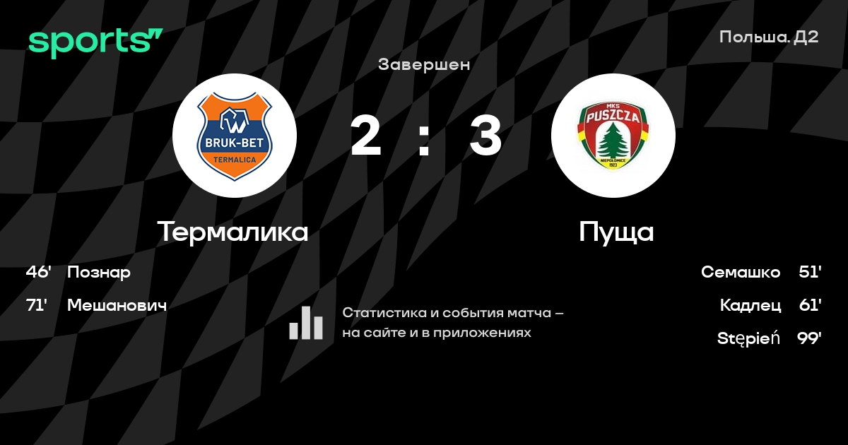 Термалика – Пуща: Термалика не проигрывает в 5 последних матчах против этого соперника