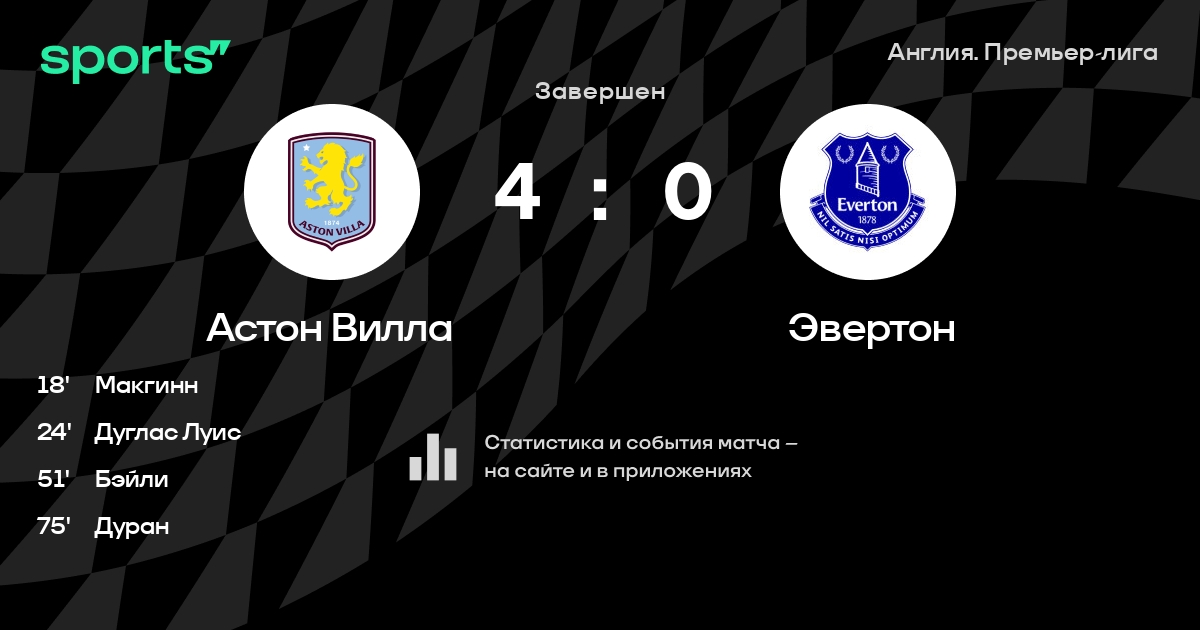 Астон Вилла – Эвертон: Астон Вилла побеждает в 4 последних очных матчах