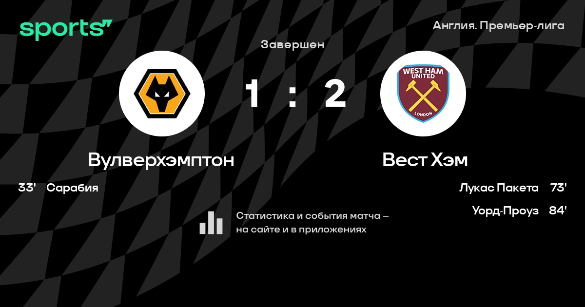 Вулверхэмптон – Вест Хэм: Вулверхэмптон не проигрывает в 5 из 7 последних матчей против этого соперника дома
