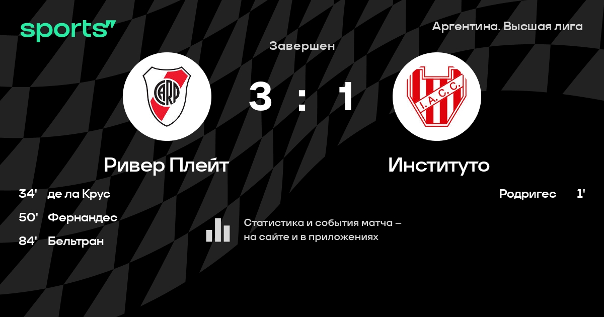 Ривер Плейт – Институто: Ривер Плейт забивает в 8 из 9 последних матчей против этого соперника