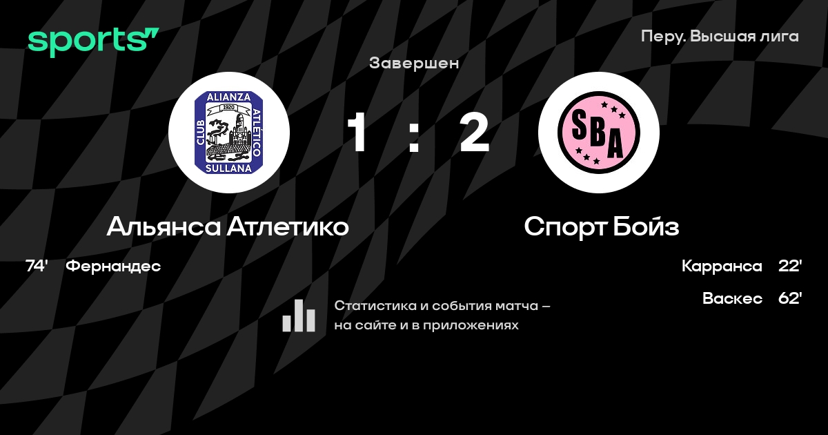 Альянса Атлетико – Спорт Бойз: Спорт Бойз не проигрывает в 6 из 8 последних матчей против этого соперника