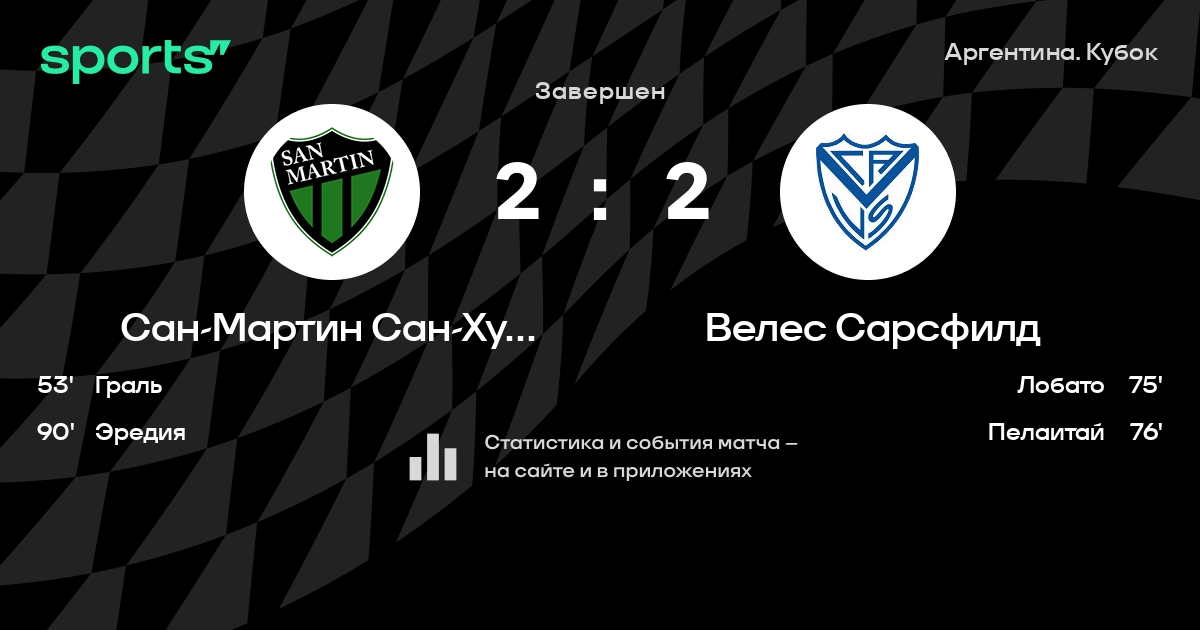 Сан-Мартин Сан-Хуан – Велес Сарсфилд: Велес Сарсфилд забивает в 3 последних матчах против этого соперника