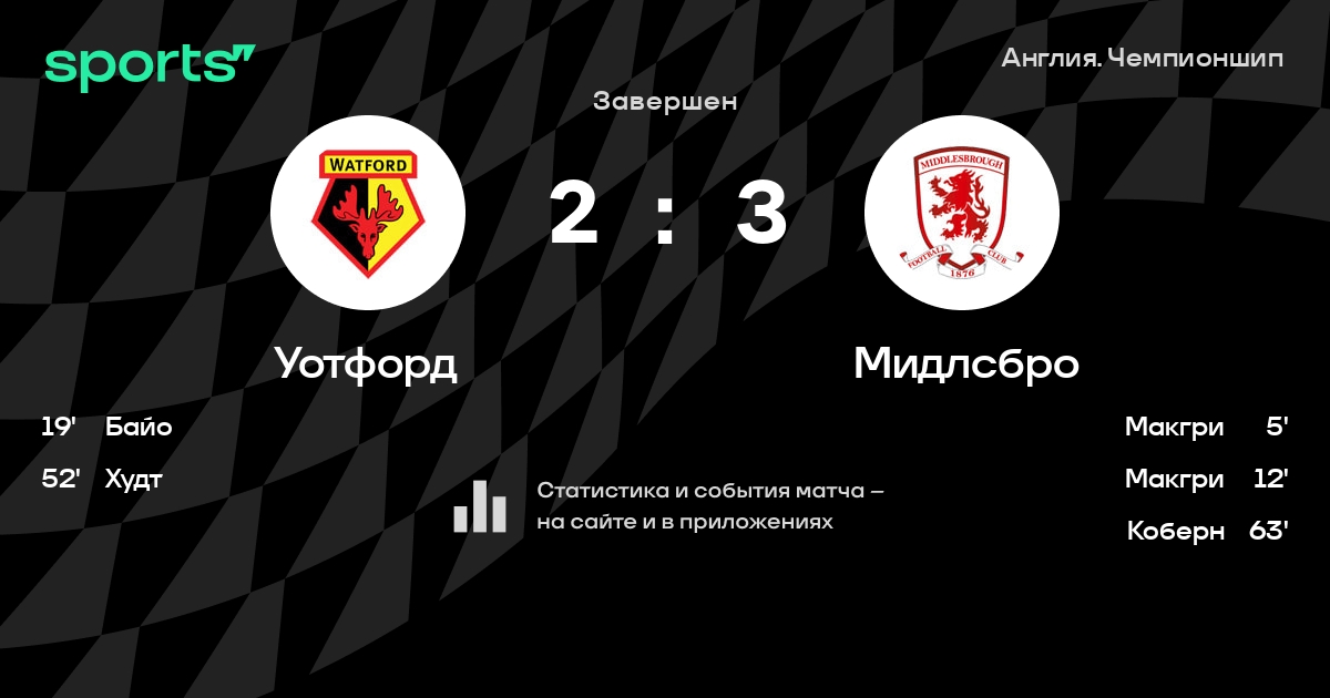 Трансляция Уотфорд - Мидлсбро