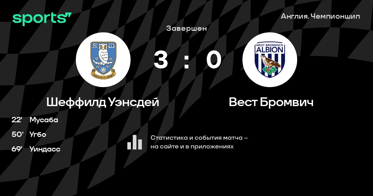 Шеффилд Уэнсдей – Вест Бромвич: Вест Бромвич не пропускает в 3 последних матчах против этого соперника