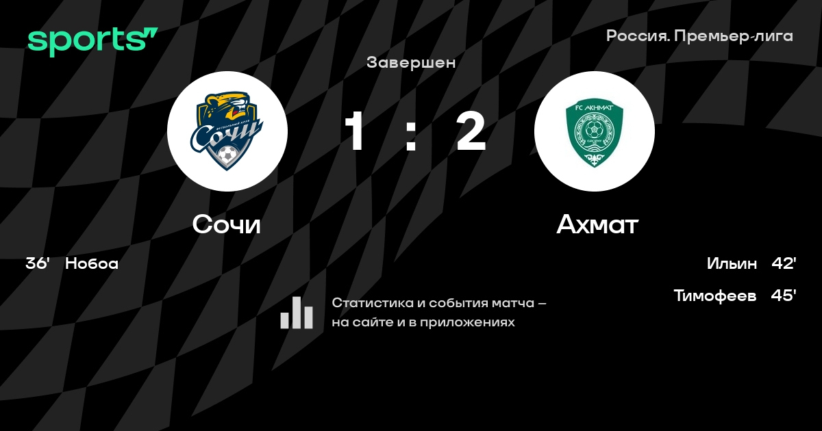 Сочи – Ахмат: Ахмат забивает в 5 последних матчах против этого соперника