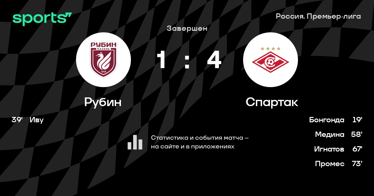 Рубин – Спартак: Спартак не проигрывает в 5 из 7 последних матчей против этого соперника в гостях