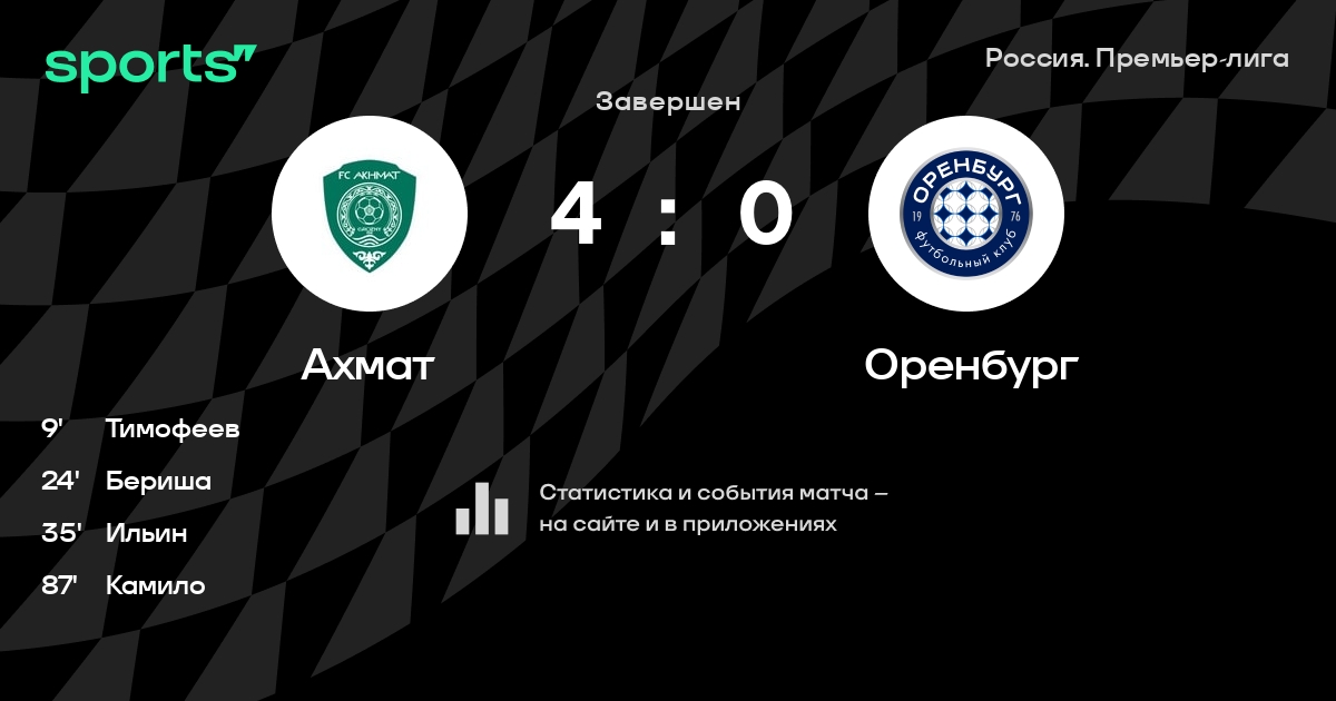 Ахмат – Оренбург: Оренбург забивает в 11 последних матчах против этого соперника