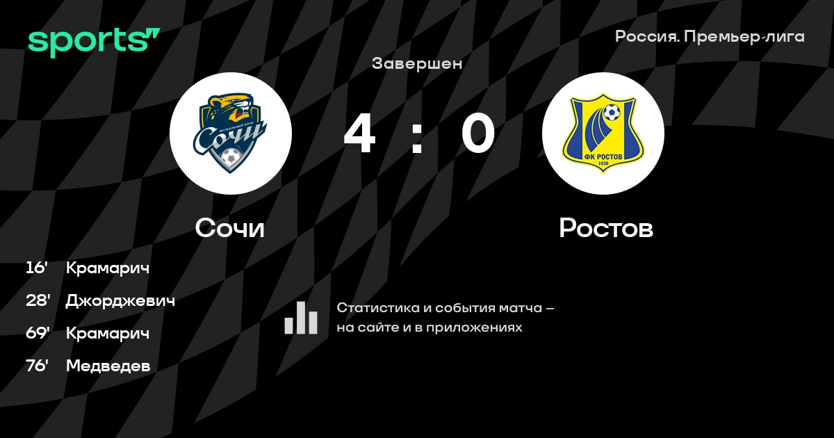 Сочи – Ростов: Сочи забивает в 5 последних матчах против этого соперника